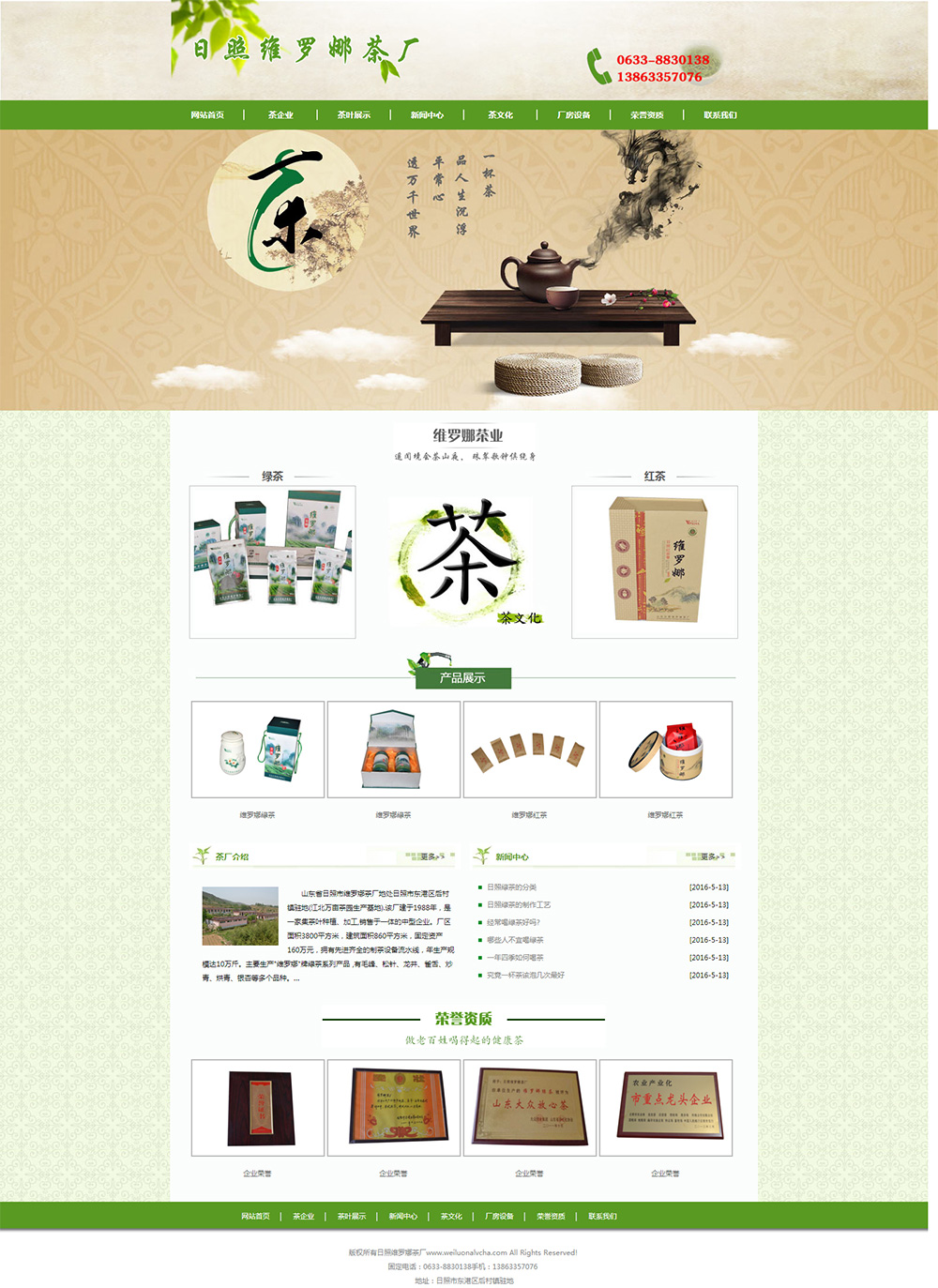 • 山東省日照市維羅娜茶廠地處日照市東港區(qū)后村鎮(zhèn)駐地(江北萬畝茶園生產(chǎn)基地).該廠建于1988年,是一家集茶葉種植、加工,銷售于一體的中型企業(yè)。廠區(qū)面積3800平 方米,建筑面積860平 方米,固定資產(chǎn)160萬元,擁 有先 進齊 全的制茶設備流水線,年生產(chǎn)規(guī)模達10萬斤。主要生產(chǎn)"維羅娜"牌綠茶系列產(chǎn)品 ,有毛峰、松針、龍井、雀舌、炒青、烘青、銀杏等多個品種。 維羅娜茶廠位于日照市西部山區(qū),這里的茶葉不僅 有云霧雨露滋潤,還對茶園實行自然生 態(tài)管理技 術(shù),集諸多名茶之制作優(yōu)點,形成了南茶不能比較的北方“維