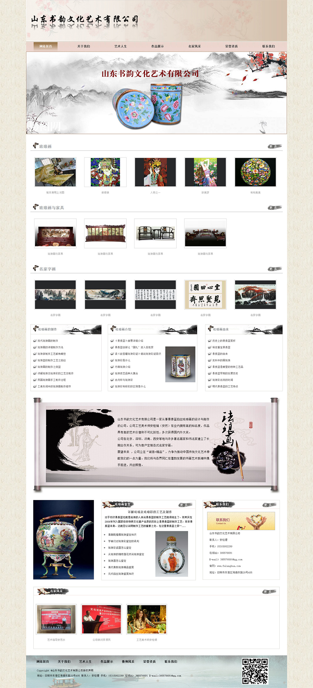 • 山東書韻文化藝術(shù)有限公司是一家從事景泰藍(lán)掐絲琺瑯畫的設(shè)計與制作的公司。公司工藝美術(shù)師安桂娟(安然)在業(yè)內(nèi)擁 有高的知 名度,作品具有高的藝術(shù)價值和不能比較性,多次獲得國 內(nèi)外大獎。 公司在北京、深圳、濟(jì)南、西安等地與許多著 名畫家和書法家建立了長期合作關(guān)系,可為客戶定制各式名家字畫。 展望未來 ,公司立足“誠信+精 品”,力爭為推動中國傳統(tǒng)文化藝術(shù)奉獻(xiàn)我們的一點(diǎn)力量。我們將與各界同仁在蓬勃發(fā)展的書畫藝術(shù)新潮中攜手前進(jìn),共創(chuàng)輝煌。